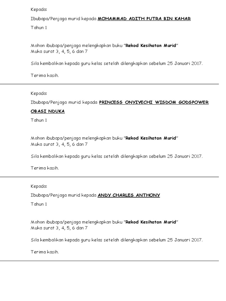 Muka surat 3, 4, 5, 6 dan 7. Contoh format rekod buku log masalah disiplin murid. Mereka perlu pergi semula ke klinik kesihatan @ klinik swasta di mana imunisasi telah di ambil semasa bayi 6/12 6/9. Merancang dan melaksanakan program kesihatan. Kepada yang berminat bolehlah memuat trun sekarang. Dan setelah selesai, ke esokkan harinya saya dan isteri perlu ke klinik kesihatan ibu & anak yang lain untuk membuat pemeriksaan darah berkenaan hiv. Pengagihan buku teks spbt kepada murid. Cara pengisisan buku rekod kesihatan murid. Rekod fizikal murid timbangan dan ukuran. · rekod prestasi kerja guru dan akp. jika rekod imunisasi telah hilang /tidak ingat. Buku rekod keluar masuk murid 14. Cara mengisi buk u rek od k esihatan murid.