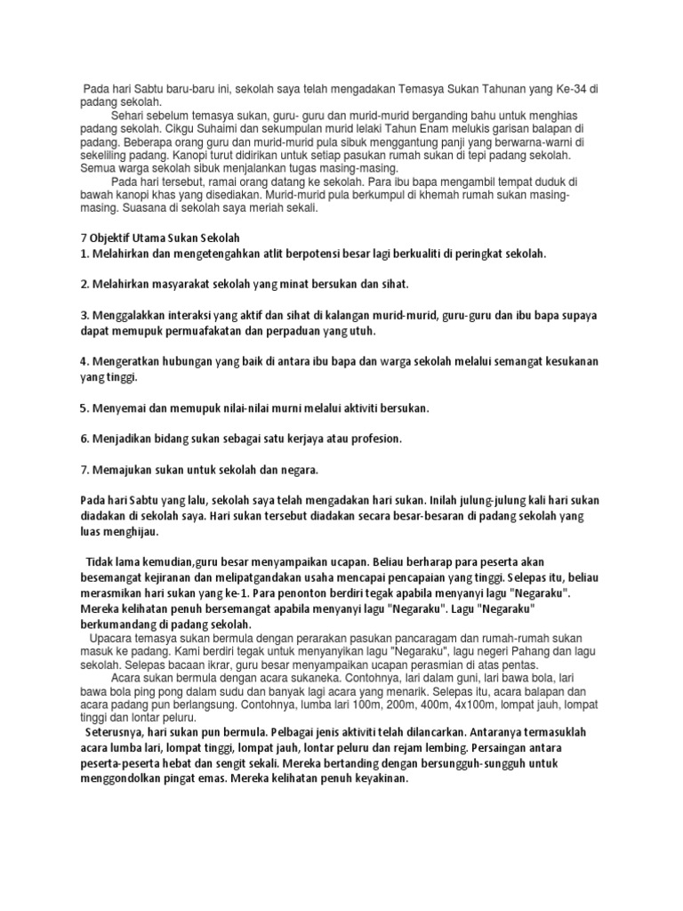 Karangan Hari Sukan Sekolah Menengah - Contoh karangan spm sukan lasak.. Selain itu, aktiviti sukan juga dapat memupuk sahsiah yang terpuji dalam diri pelajar. Keterlibatan semua murid dalam aktiviti sukan b. 14 contoh karangan narasi tentang pendidikan, liburan, lingkungan, guru, sekolah juga pengalaman pribadi adalah karangan yang cerita seseorang dengan beberapa. Apa sih karangan narasi itu? It is also the first sekolah menengah agama persekutuan (smap) established in pahang and the third in malaysia after sekolah menengah agama a mini stadium located at the school's main field and being used for sports events or others such as merentas desa, hari sukan sekolah and other sports.