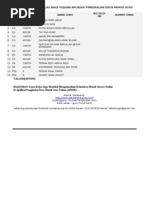 Semua data murid termasuk murid berkeperluan khas terkumpul seawal darjah 1 hingga tingkatan 6 atau kolej matrikulasi. Pengemaskinian maklumat dalam aplikasi pangkalan data murid (apdm) modul pengurusan murid bagi sesi persekolahan tahun 2021. Soal jawab berkenaan masalah mengemaskini maklumat dan data murid administrator apdm perlu menyemak beberapa perkara sebelum membuat pengesahan data murid. Apdm 2019, ekehadiran, apdm nkra. Previous articlesistem guru online sgo contact list.