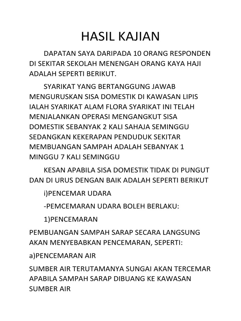 Related : Hasil Kajian Sisa Domestik - Langkah Menangani Masalah Pembuangan Sampah - Senarai kandungan bil kandungan muka surat 1 penghargaan 2 pendahuluan 3 objektif kajian 4 kawasan kajian 5 kaedah kajian 6 hasil kajian 7 rumusan 8 rujukan..
