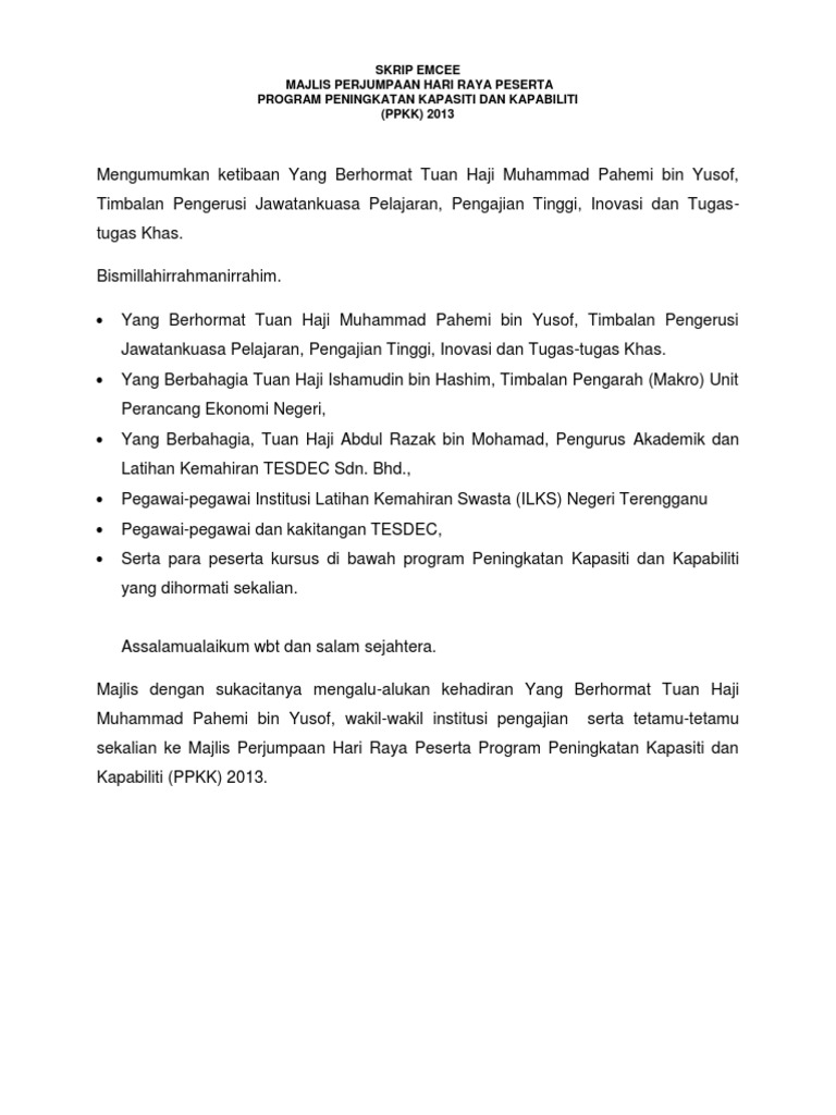 Teks Pengacara Majlis Sambutan Hari Raya - Teks Pengacara Majlis Perasmian Penutupan Program / Semoga majlis kita dirahmati allah.